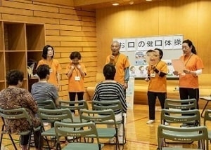 そのほかには、歯磨き指導、歯科相談、寒川町ではお口の健口体操も行われ健口体操指導員の方々にも積極的に会場を盛り上げていただきました。会場外では、歯科訪問車「金太郎号」を展示し指の型をとる子供向けのイベントを行い、多くの方に来場していただきました。