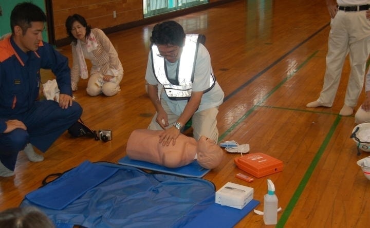 8月26日(日)に寒川町総合防災訓練及び茅ヶ崎市総合防災訓練が行われ、本会会員が医療救護訓練に参加しました。午前の寒川町総合防災訓練は一之宮小学校にて行われました。内容は例年通りトリアージについての説明、三角巾、AEDの使用方法説明が参加住民に行われました。